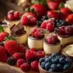 Serving an Epic Mini Cheesecake Board is all about presentation and fun. Place your cheesecake board in a central location where everyone can easily reach it. A large wooden or marble board works well for an appealing display.