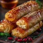 Golden Baked Feta Rolls with Sweet Cranberry Honey