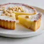 Egg Wash and Pine Nuts: Take the beaten egg yolk and brush it over the top of the pastry. This will give it a beautiful golden color once baked. Scatter the pine nuts across the top, pressing them lightly so they’ll stick during baking.