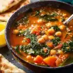 A warm and nourishing soup packed with chickpeas, fresh vegetables, and aromatic spices, perfect for a cozy dinner or light lunch.