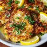 Parmesan-Crusted Lemon Chicken is a delightful dish that combines the savory flavors of Parmesan cheese with the bright, zesty taste of lemon. This recipe is perfect for weeknight dinners, special occasions, or meal prep, as it is both simple to make and incredibly satisfying. The crispy crust gives each chicken breast an appealing texture, while the juicy meat remains moist and flavorful. With just a few ingredients and straightforward cooking steps, you can create a restaurant-quality dish right in your own kitchen.