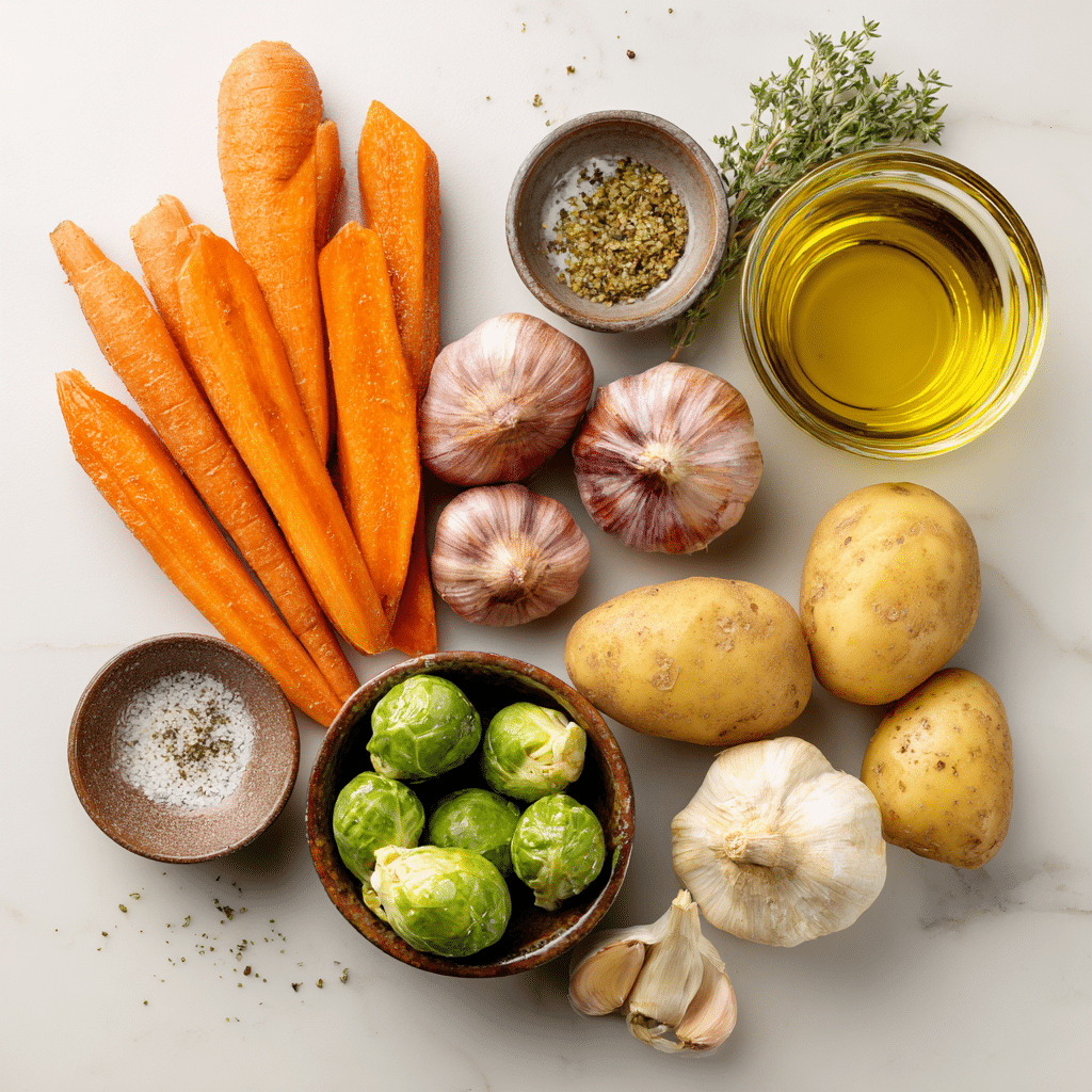 A vibrant mix of roasted holiday vegetables caramelized to perfection with olive oil, herbs, and a hint of maple syrup. This colorful and flavorful side dish is perfect for Christmas, Thanksgiving, or any festive dinner table.