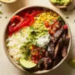 If you’re looking for a delicious and colorful meal that is packed with flavor, the Steak Fajita Bowl is a fantastic choice. This bowl combines marinated flank steak, sautéed veggies, and vibrant corn salsa, all served over a bed of cilantro lime rice. It’s not just tasty; it’s also customizable, allowing you to add your favorite toppings like guacamole, sour cream, or fresh salsa. This dish is perfect for a casual dinner at home or a festive gathering with friends. Making it at home saves money and gives you the chance to use fresh, high-quality ingredients. Plus, it’s a fun way to get everyone involved in the cooking process—each person can assemble their own bowl just the way they like it!