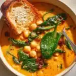 A delightful and nutritious soup combining chickpeas, sundried tomatoes, and cozy Italian flavors, perfect for a light lunch or dinner.