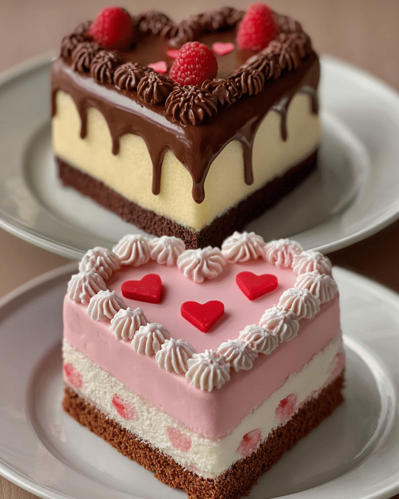 Once cooled, layer the cakes with your favorite frosting. A creamy buttercream or a rich chocolate ganache works beautifully. Decorate the top with fresh berries or romantic sprinkles. Cut into slices and serve with love!